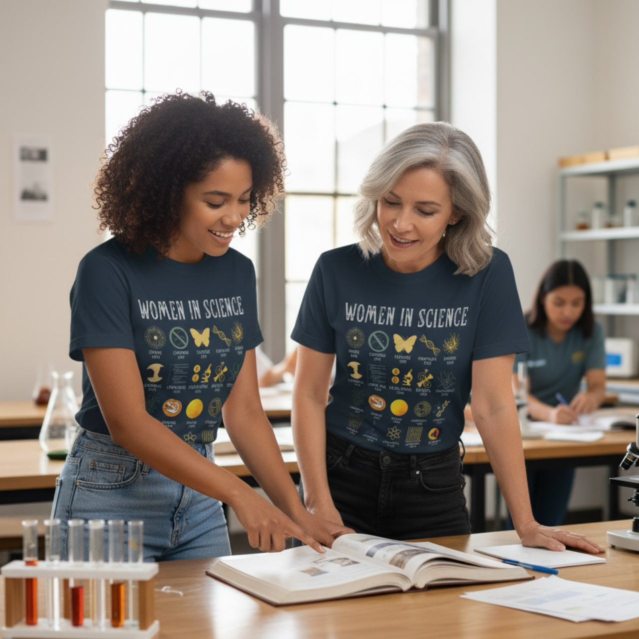 For the Curious Science Lover: Our “Women in Science” line honors curiosity and confidence with bold, inspiring designs perfect for educators, students, and lifelong learners.